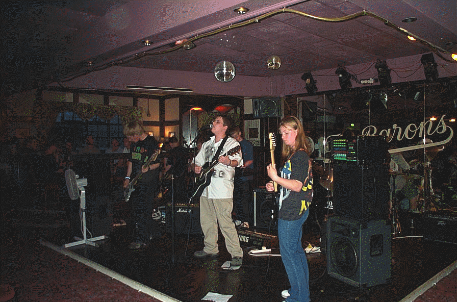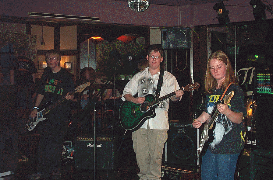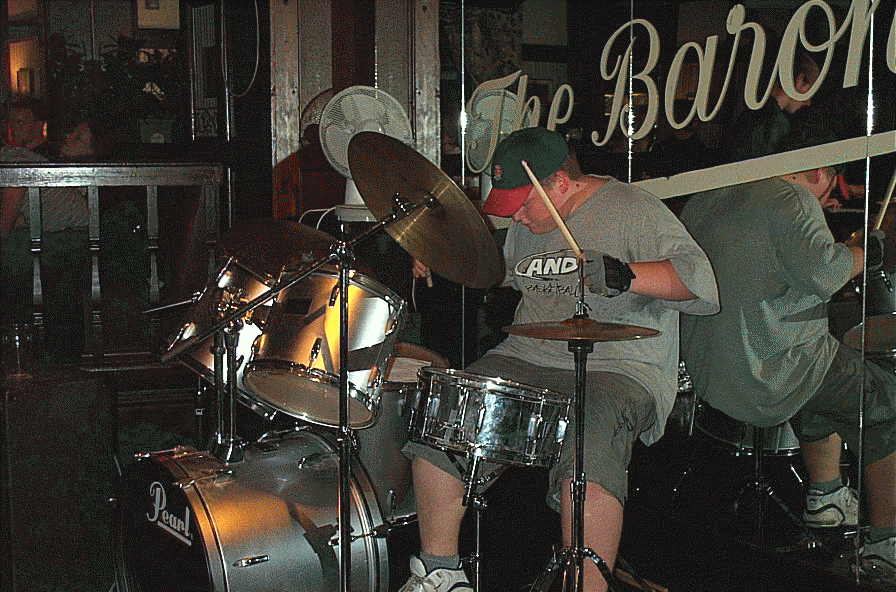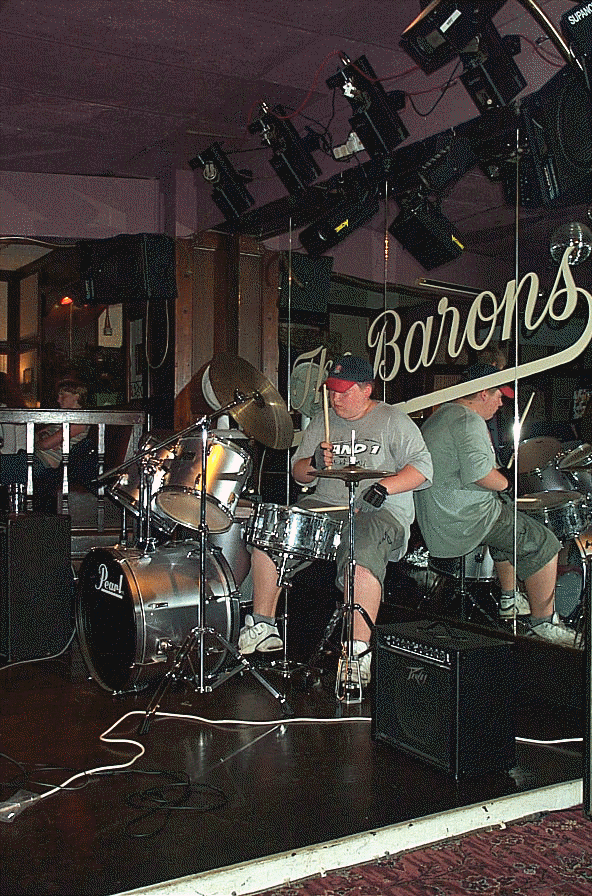 if we hide the drummer behind the amps maby people wont notice he is there!
